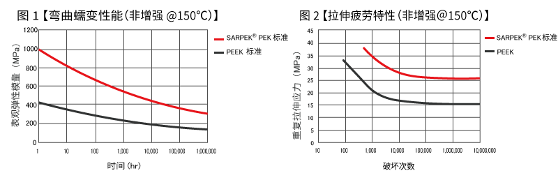 根据图1可知,与PEEK树脂相比,即使长时间放置在高温下,其变形也较小;根据图2可知,与PEEK树脂相比,其在高温条件下不易发生疲劳破坏。